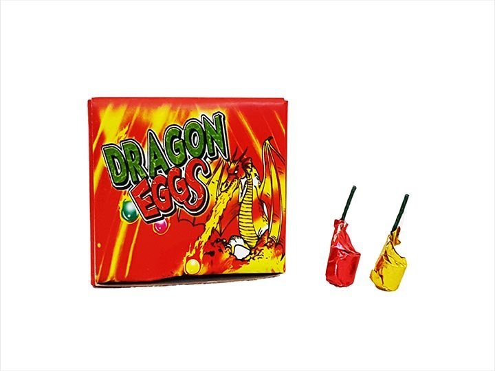 DRAGON EGGS . Balení obsahuje 6 ks granulí. Každá granule obsahuje 5g NEC a to ji řadí do 1.kategorie prodejné od 15 let. DRAGON EGGS vydává praskající efekt, stříbrné barvy.