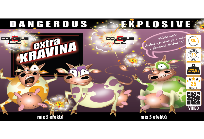 Ekxtra kravina 25SH je rovný ohňostroj o počtu 25 výmetníků. Ohňostroj je ideální a rychlou volbou pro zpestření různých večírků či například oslav narozenin. Obsahuje přes 160g pyrosloží a zaručí Vám perfektní zpříjemnění vašeho večera například při oslavě narozenin.